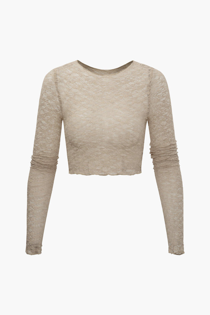 Lace Sheer Round Neck Long Sleeve Top