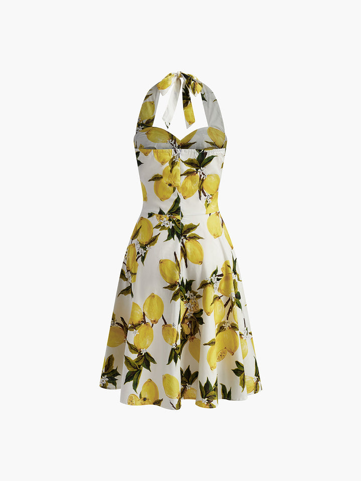 Print Cotton Halter Sweetheart Neck Dress