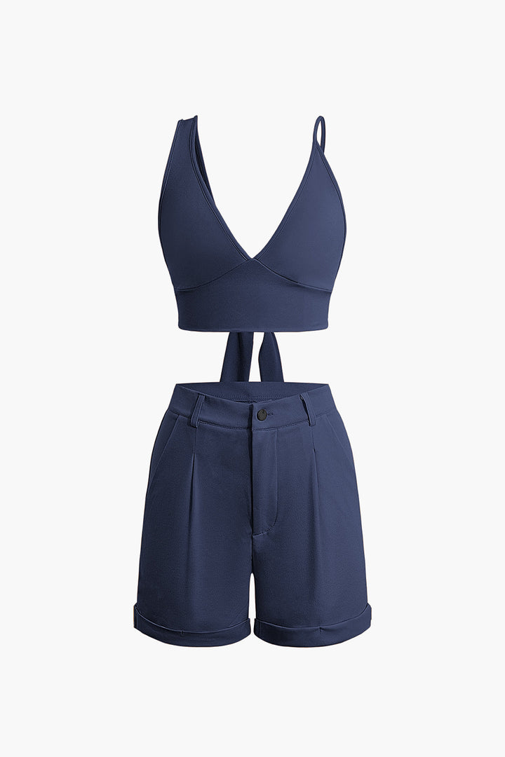 Solid Knot V-neck Cami Top And Shorts Set
